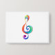 Tecla musical extraída de capas multicolores de colores arcoiris sobre fondo blanco.