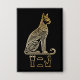 Estilizado Bastet minimalista dorado, la antigua diosa gata egipcia con su nombre escrito en jeroglíficos.