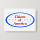 This button displays a badge stating "Citizen of America" written in red with three blue stars on each side of the text and a blue rim around the edge.
