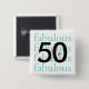 El personalizado divertido "50 and Fabulous" (50 y fabuloso) cuenta con un gran "50" negro en negrita sobre la palabra "fabuloso" repetido cuatro veces en texto verde azulado claro sobre un fondo blanco. Una pequeña ampersand negra está enclavada en el cero de los cincuenta.