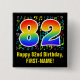 Este divertido, colorido y vibrante diseño de botón de cumpleaños presenta un gran número "82" con un patrón inspirado en el gradiente del espectro arcoiris. También incluye el mensaje "Feliz cumpleaños número 82", y un nombre personalizado. Parte del fondo presenta un patrón de varias notas musicales y símbolos con una variedad de colores y tamaños. Botones como este pueden ser usados por los asistentes en una celebración de cumpleaños que se lleva a cabo para celebrar el cumpleaños de un cantante, un músico, un compositor de canciones, o el cumpleaños de alguien más por 80 segundos. [~Z0000424]