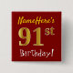 Chapa Cuadrada 91.o cumpleaños del oro rojo, falso, con nombre de