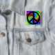 Arte fractal de color arcoiris funky con un símbolo de paz negro.