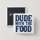 Gracioso botón de retroceso con lema Amigo con la comida.