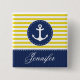 El botón náutico con las rayas del amarillo y de azules marinos, el texto adaptable y el ancla son blancos.