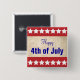 Este botón cuadrado presenta un fondo de papel antiguo, una franja roja con estrellas blancas en la parte superior e inferior y el texto de personalizable que dice: Feliz 4 de julio.