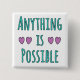 A charming and uplifting design featuring the inspirational phrase "Anything is Possible" in soft light teal, accented with two sets of delicate pink hearts to spread positivity and love.