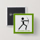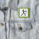 Arquero con el botón de arco negro de arco que muestra un icono minimalista de una silueta negra de un arquero y tu texto sobre fondo blanco con borde verde.
