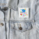 Añade el nombre y la edad de tu hijo y reparte este hermoso botón a los invitados de la fiesta de cumpleaños de tu hijo. Un lindo elefante personalizado con orejas redondas sonríe alegremente con ojos cerrados y largos encallados, rodeados de sol, nubes y hierba. Está encima de una florida floración de color arcoiris con la inscripción "Let's Fiesta". Diseño original disponible exclusivamente en ©EleSil tienda online.