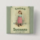 Sucard del antiguo Cacao — Azúcar de chocolate de Francia Ciertamente les encantaba su chocolate en la Francia victoriana. Sucard de cacao significa Azúcar de chocolate. La niña de edad te está dando un beso, un beso de chocolate. El pequeño chica vintage ama el chocolate. La imagen anticuada se imprimió originalmente en una lata de chocolate de 1900 —publicidad de chocolate vintage. El fondo es de color verde antiguo y blanco antiguo, mientras que la pequeña se pone de pie, y te da un beso. La imagen anticuada es una pequeña chica de pelo marrón que lleva su caja de chocolates. Lleva un lindo vestido azul y rosa. Este es el bello arte publicitario vintage perfecto para los amantes del chocolate.