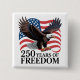 Celebrate 250 years of American independence with this Bald Eagle with American Flag 250 Years of Freedom Button. Featuring a powerful bald eagle combined with the American flag, it symbolizes strength, liberty, and national pride. Perfect for patriotic events, parades, and everyday wear, this button is a bold tribute to the enduring spirit of freedom and the nation’s historic journey.