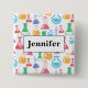 Botón con un patrón divertido y colorido. Los investigadores científicos vivirán con vasos y frascos de diferentes formas y tamaños en colores alegres y brillantes.