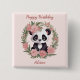 Chapa Cuadrada Bebé Adorable Panda Bear con Flores