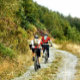 Dos hombres en bicicleta de montaña en las colinas de Gales.