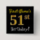 Chapa Cuadrada Black, Faux Gold 51st Birthday, con nombre persona