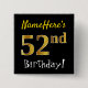 Chapa Cuadrada Black, Faux Gold 52nd Birthday, con nombre persona