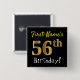 Este sencillo diseño de botón cuadrado muestra un mensaje como "¡Cumpleaños 56 del nombre de pila!", con el "56" con un aspecto de color falso/imitación dorado, en un fondo de color negro. El nombre se puede personalizar. Botones como este podrían ser usados por los invitados en una fiesta de cumpleaños para alguien que está celebrando su 56º cumpleaños, donde el fiesta está siendo retenido en un gran área con muchas otras personas presentes (como un parque de la ciudad o un parque temático). [~Z0000162]