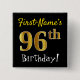 Chapa Cuadrada Black, Faux Gold 96th Birthday, con nombre persona