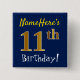 Chapa Cuadrada Blue, Faux Gold 11th Birthday, con nombre personal