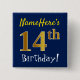 Chapa Cuadrada Blue, Faux Gold 14th Birthday, con nombre personal