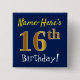 Chapa Cuadrada Blue, Faux Gold 16th Birthday, con nombre personal