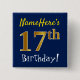 Chapa Cuadrada Blue, Faux Gold 17th Birthday, con nombre personal