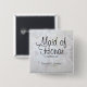 Este hermoso botón de identificación es perfecto para identificar a los miembros clave de la fiesta de boda en la ducha de novia, la cena de ensayo o la recepción de boda. Presenta letras de escritura negras modernas sobre el fondo de reflejar flores y corazones de peones blancos. El texto es completamente personalizable y dice: Mujer de honor, con un lugar para su nombre, el nombre de la pareja y la fecha de boda.