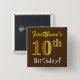 Este sencillo diseño de botón cuadrado muestra un mensaje como "¡Cumpleaños 10 de FirstName!", con el "décimo" con un aspecto falso/imitación de color dorado, en un fondo de color marrón. El nombre se puede personalizar. Botones como este podrían ser usados por los invitados en una fiesta de cumpleaños para alguien que está celebrando su décimo cumpleaños, donde el fiesta está siendo retenido en una gran zona con muchas otras personas presentes (como un parque de la ciudad o un parque temático). [~Z0000165]