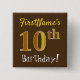 Chapa Cuadrada Brown, Faux Gold 10 cumpleaños, con nombre persona
