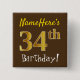 Chapa Cuadrada Brown, Faux Gold 34th Birthday, With Custom Name