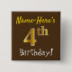 Chapa Cuadrada Brown, Faux Gold 4º Cumpleaños, Con Nombre Persona