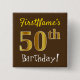 Chapa Cuadrada Brown, Faux Gold 50 cumpleaños, con nombre persona