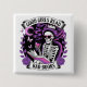 Un diseño colorido y vibrante muestra a una esqueleto femenina leyendo un libro mientras toma un cóctel al vapor. A su alrededor hay flores moradas y mariposas, que se suman a la estética animada. El texto audaz y colorido dice: "Los buenos chicas leen libros malos". Este diseño único está disponible en una amplia gama de productos.