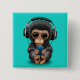 Chapa Cuadrada Chimpancé del bebé con los auriculares y el