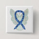 El perno de sensibilización muestra la pintura de un ángel de cinta de sensibilización azul paisajista sobre un colgante de botón personalizado. Las enfermedades tiroideas utilizan una cinta de paisajes azules, ya que la forma de los paisajes es similar a la de los folículos tiroideos de la glándula tiroidea. Los pines o botones de solapa de cinta de ángel de conocimiento azul paisley se pueden personalizar con mensajes personalizados para hacer botones de gran causa para pendants de recaudación de fondos para causas, regalos de pin de concienciación u otros eventos especiales de pendant o clavija de solapa de concientización para ocasiones de causa.
