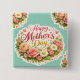Descripción de la insignia deja que lleven su corazón en la manga o en su solapa con esta hermosa insignia del Día de la Madre con una impresionante corona de rosas rosadas y margaritas delicadas sobre un fondo suave azul verdoso. Este accesorio encantador es el regalo extra perfecto. Es una forma encantadora de hacer que se sienta especial y celebrada