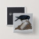 Dibujo a lápiz de color de un curioso cuervo que investiga una armónica brillante que ha encontrado.
