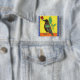 Este hermoso cuervo está cubierto de marcas multicolores en muchas formas diferentes que recuerdan a las que se encuentran en tallados de animales oaxaqueños pintados. Se para sobre una vibrante superficie naranja con un vívido fondo amarillo, sosteniendo una rosa roja en su pico. El conjunto está rodeado por una frontera de estilo mexicano.