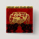 En un cuadrado hay 2 Oxen negro, colocado bajo una forma dorada dentro de la cual está el tercer buey con ideograma. Detrás de la escena hay un fondo rojo en el que las letras decorativas y ornamentadas forman las palabras: AÑO DE LAS BUENAS. Diseño en botón cuadrado. Tarjeta de felicitación coincidente, postal de vacaciones y más... Perfecto para el Año Nuevo Chino de los x o cumpleaños (personas nacidas en el Año Ox).