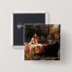 Botón que muestra la pintura al óleo de John William Waterhouse La Señora de Shalott (1888). Una hermosa mujer con un vestido blanco escapa en un bote de su destino para ver todo el mundo a través de un espejo y tejer un tapiz de él, pero al ver al príncipe Lancelot, la maldición sigue a la Señora de Shalott hasta su muerte. Los colores otoñales brillantes pintan esta escena trágica. Un regalo impresionante para los entusiastas de la Arthuriana y los coleccionistas de pre-Raphaelita.