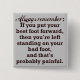 Esta graciosa cita desmotivacional/falsa inspiradora dice: "Recuerden siempre: Si ponen su mejor pie adelante, entonces se quedan parados en su mal pie, y eso probablemente sea doloroso".