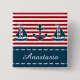 Diseño náutico con velero y decoración de ancla sobre fondo rayado rojo y blanco