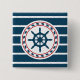 Diseño náutico con decoración de ruedas de vela en forma redonda sobre fondo rayado azul y blanco
