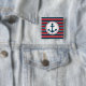 Diseño náutico con decoración de ancla en forma redondeada con estrellas de fondo rayado rojo, azul y blanco