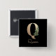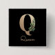 Chapa Cuadrada Elegante Monograma Botánico Gold Letra Q Button