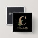 Chapa Cuadrada Elegante Monograma Botánico Gold Letter C Button