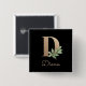 Chapa Cuadrada Elegante Monograma Botánico Gold Letter D Button