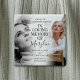 Recuerde a un ser querido con este precioso botón elegante antes y después, que incluye 2 fotografías de su familiar o amigo, (una cuando eran más jóvenes y la otra cuando eran mayores), una plantilla elegante con el título 'En memoria amorosa' su nombre o relación en el tipo de letra de caligrafía escrita a mano y sus fechas. Perfecto para que los huéspedes se acuerden de un funeral o de un funeral.