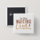 Button representa un guión sencillo de oro y marrón sobre un fondo blanco. Presenta una cruz y una inspiradora cita cristiana: "En espera, Dios está trabajando".