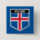 La bandera nacional de Islandia se infunde en forma de escudo con el nombre del país agregado encima de la bandera. El fondo es del mismo color que el azul de la bandera.